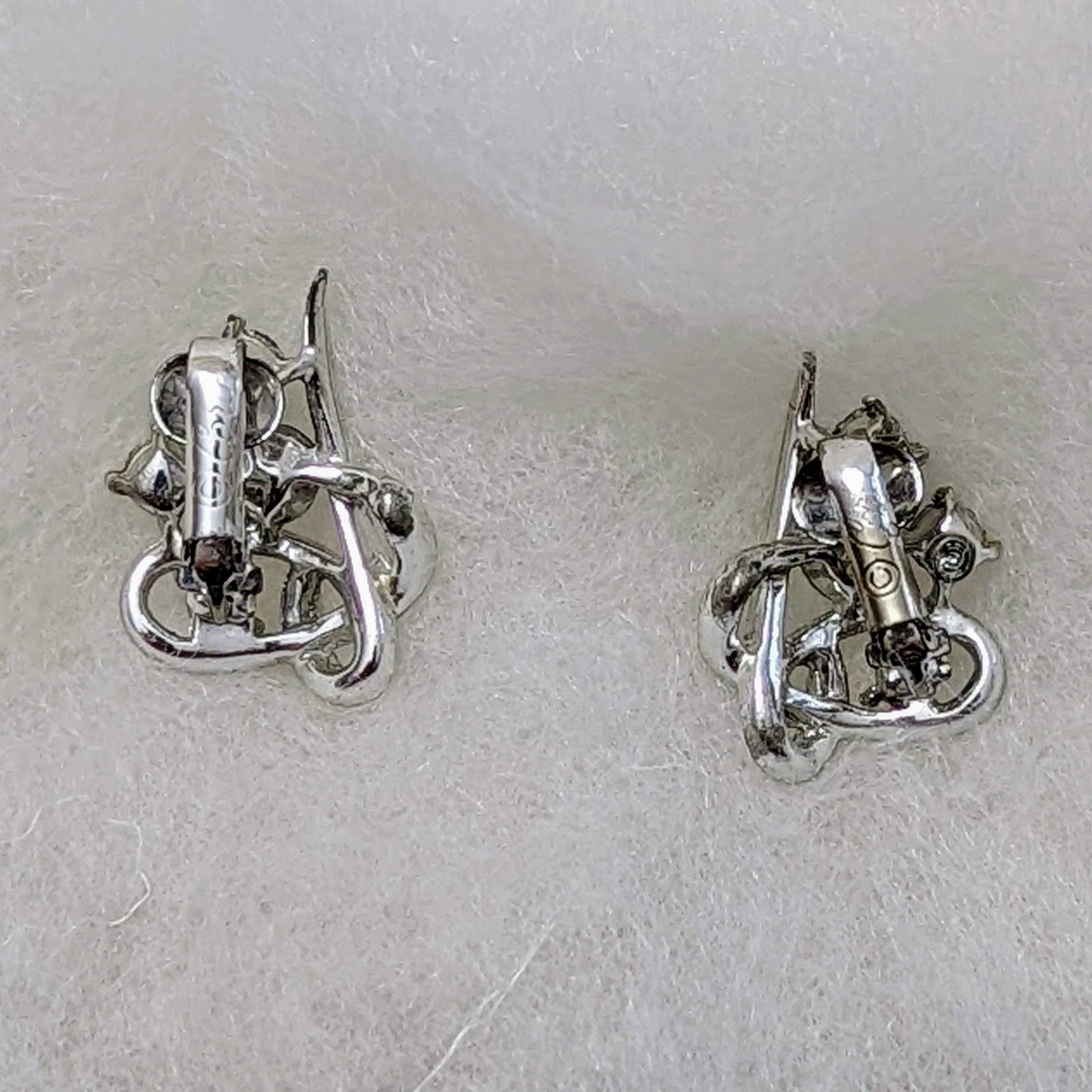 Coro Aurora Borealis Abstract Earrings are a beautiful pair. These Coro earrings contain Swarovski Aurora Borealis Crystals. These beauties on silver tone metal are clip-ons. Their size is 3/4″ x 5/8″.