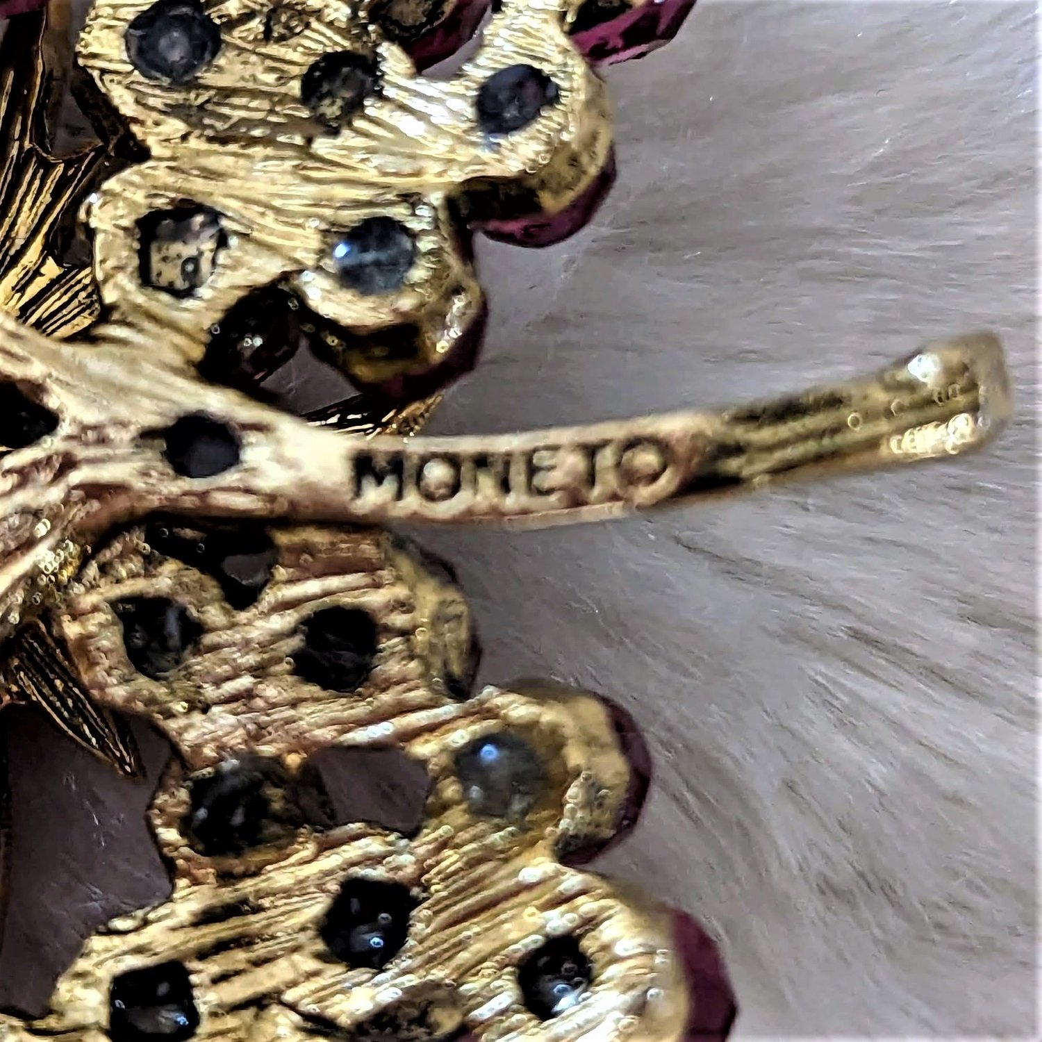 The brooch measure 2 1/8″ L and 2″ W. The signature is Monet on the back of the stem.