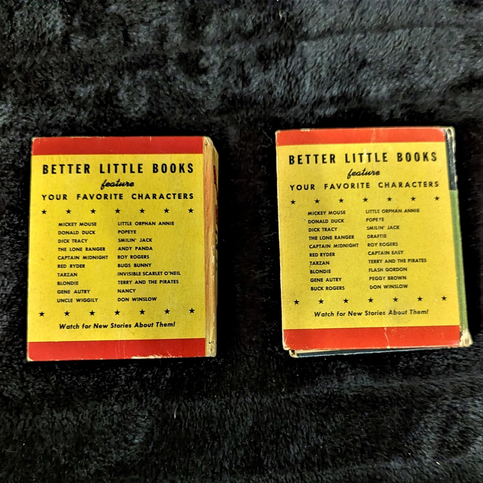 Vintage Better Little Looney Tunes Books are great to enjoy with your child or friends. These two are early 1940s publications, and are approximately 3 1/4″ x 2 1/2. They show wear and yellow pages, and may have loose spines.